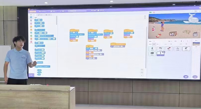人工智能专业志愿者刘根源讲授《人与鲸鱼对话》编程课