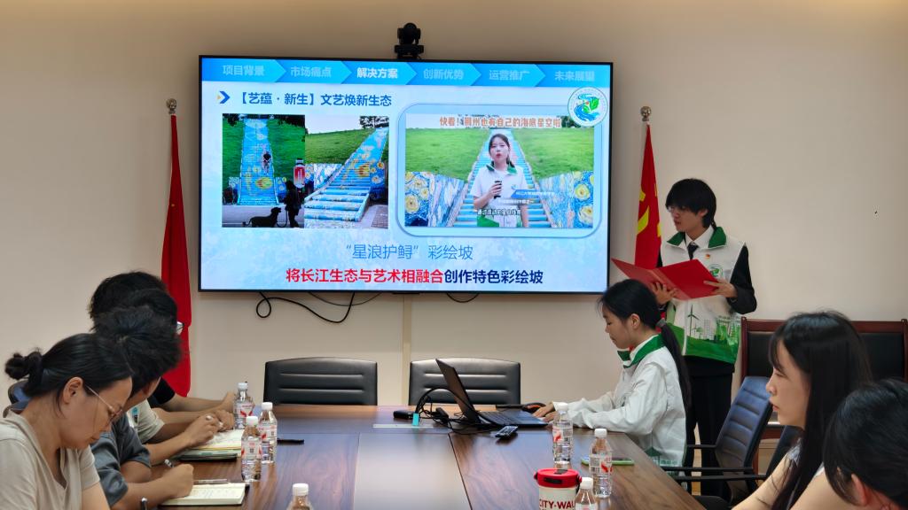 在专项汇报环节,人文与传媒公司重点介绍了其核心生态项目——“绿动荆江”。 该项目紧扣荆江生态保护需求,通过组织江滩清理、环保宣教等实践活动,打造了特色服务模式。